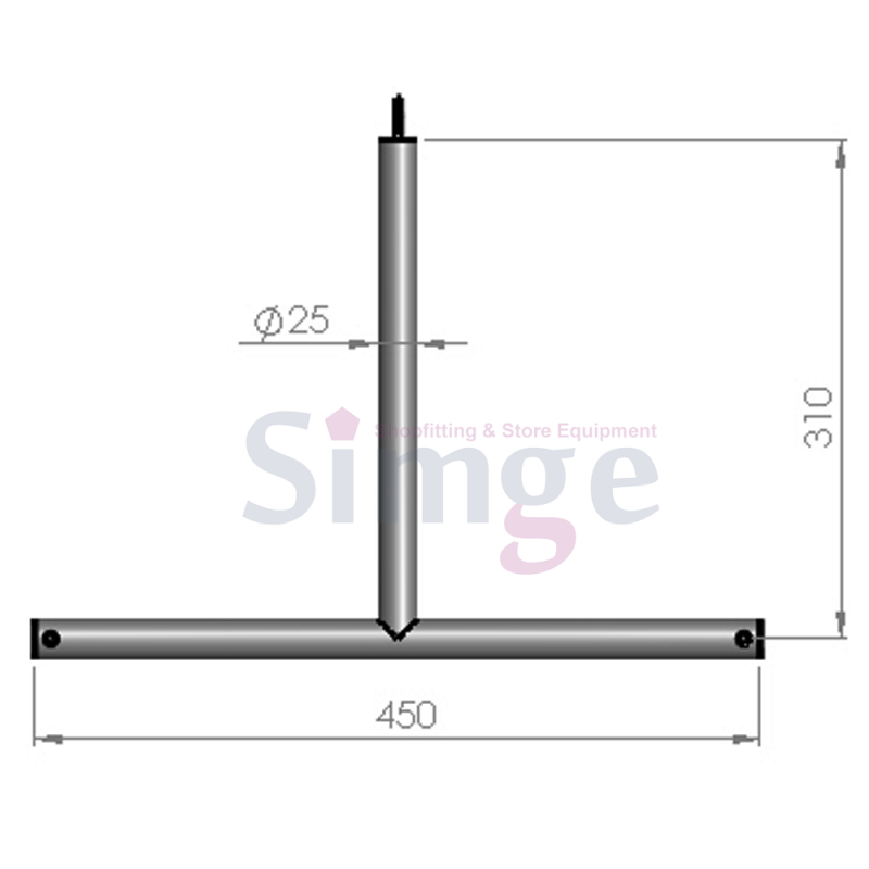There is a round pin on the end of the pipe to prevent the hangers from falling from the front .. Side Hanging 'T' Rail for Twin Slot Ø25mm With the nails located in the back part of the rack,